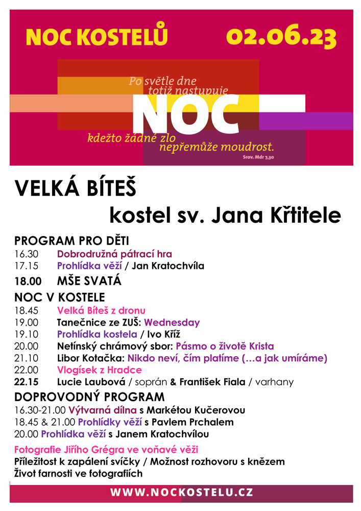 19.00 – večerní program (koncerty, výstava ve věži, prohlídky a další)
