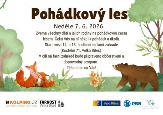 POHÁDKOVÝ LES detail akce 7. 6. 2026 14:00 Start mezi 14.00 a 15.00 hodinou na farní zahradě. detail akce